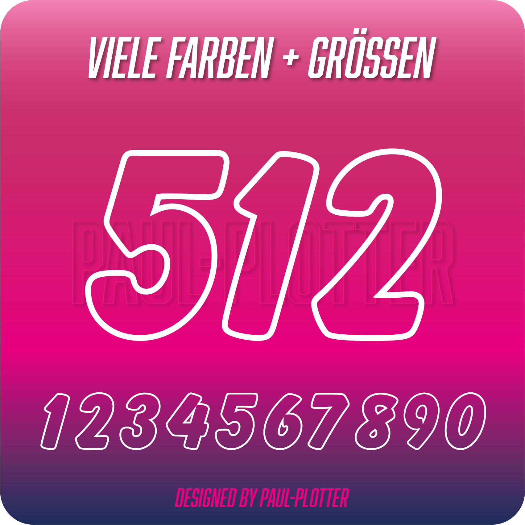 Dein Artikel wird präzise als Folienplott zugeschnitten und anschließend in Handarbeit manuell entgittert. Danach wird er mit einem Übertragungstape versehen. Nach dem Abziehen des Tapes bleibt das Aufklebermotiv sauber auf dem Untergrund haften und sorgt für eine beeindruckende Optik. Mit unserer Montageanleitung kannst du Deine Startnummern Aufkleber ganz einfach anbringen. Für größere Zahlen empfehlen wir die Verwendung eines Rakels, damit du die Verklebung jederzeit optimal im Griff hast.